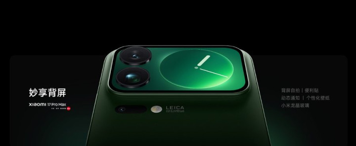 交互体验方面,小米已明确表态,小米18系列将继续延续背屏设计,且经过持续的技术研发与功能优化,新机的背屏体验将更加成熟实用。不同于以往后屏“华而不实”的尴尬,小米18系列的背屏将借助AI技术实现全面焕新,从被动显示的“小窗口”升级为主动服务的“智能伙伴”,支持自拍取景、打车显车牌、跨设备控家电、付款免翻屏等高频实用功能,彻底打破用户对后屏“智商税”的偏见。其中,标准版配备1.8英寸圆形背屏,Pro和ProMax版则升级为2.66英寸方形背屏,与机身无缝嵌合,视觉一体性与握持手感大幅提升。